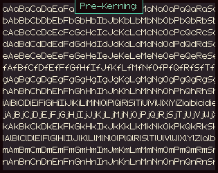 ![]() | Custom kerning pair used in Pixel Font Converter. The format is this: [Left character] [Right character] [Amount to move the right character horizontally] For this pair, it would be "T o -2" to shift the "o" 2 pixels to the left if it's after "T". |